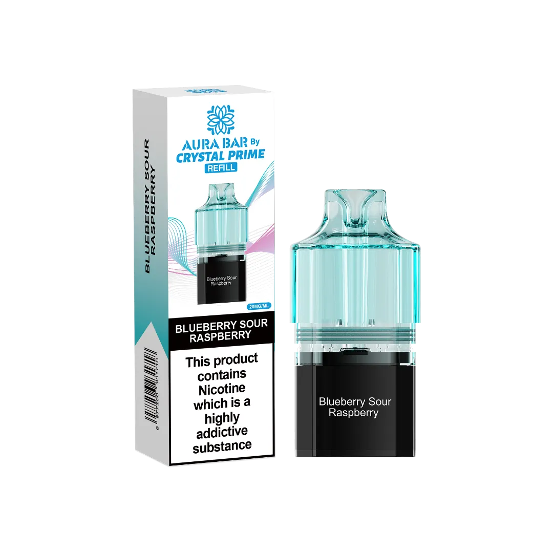 Aura Bar Crystal Prime 10K Prime Blueberry Sour Raspberry Prefilled Pod is a premium disposable vape designed for rich flavor and smooth performance. Enjoy consistent vapor production and a satisfying experience with every puff. Perfect for everyday vaping with long-lasting quality and reliable satisfaction.